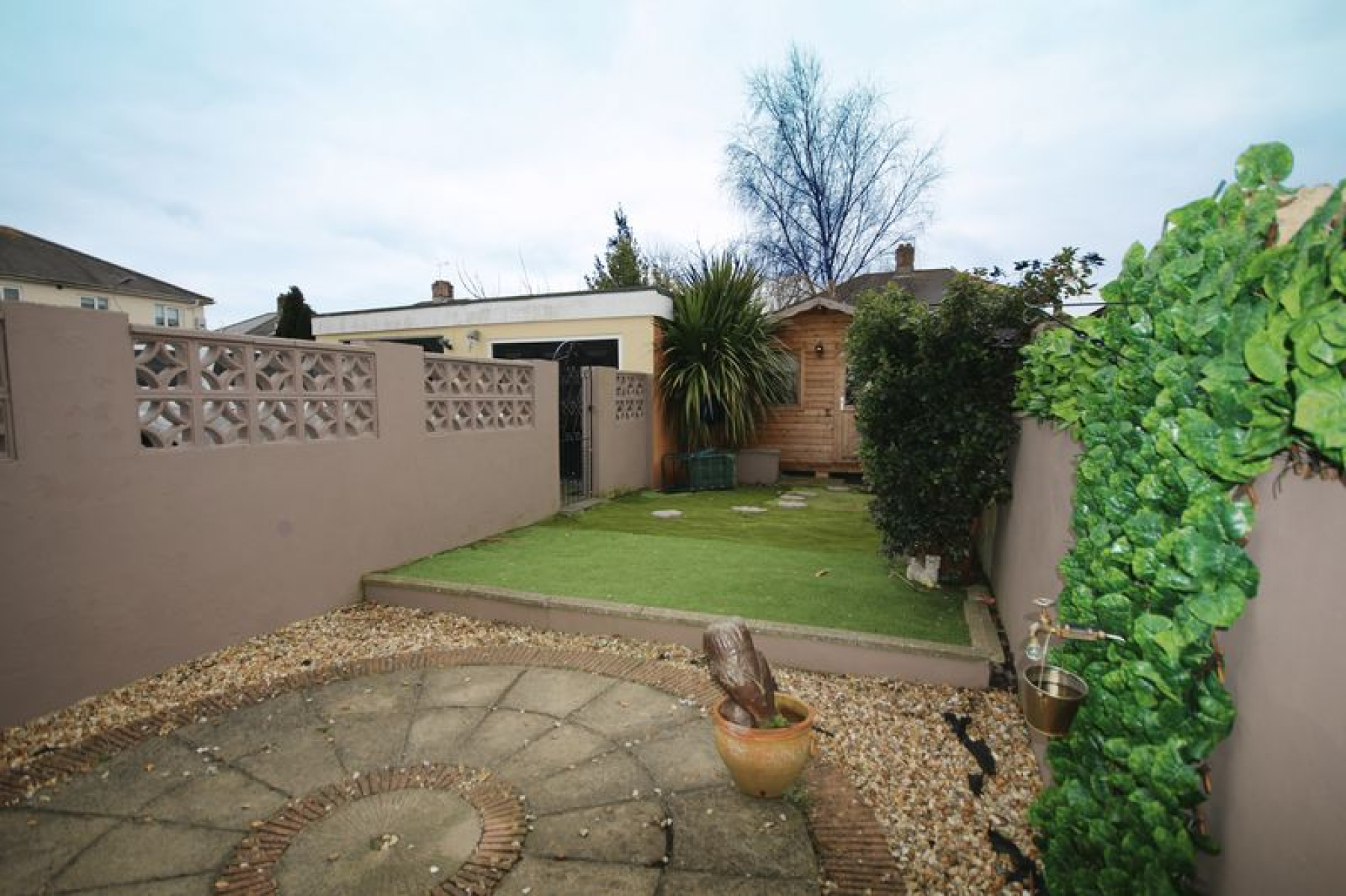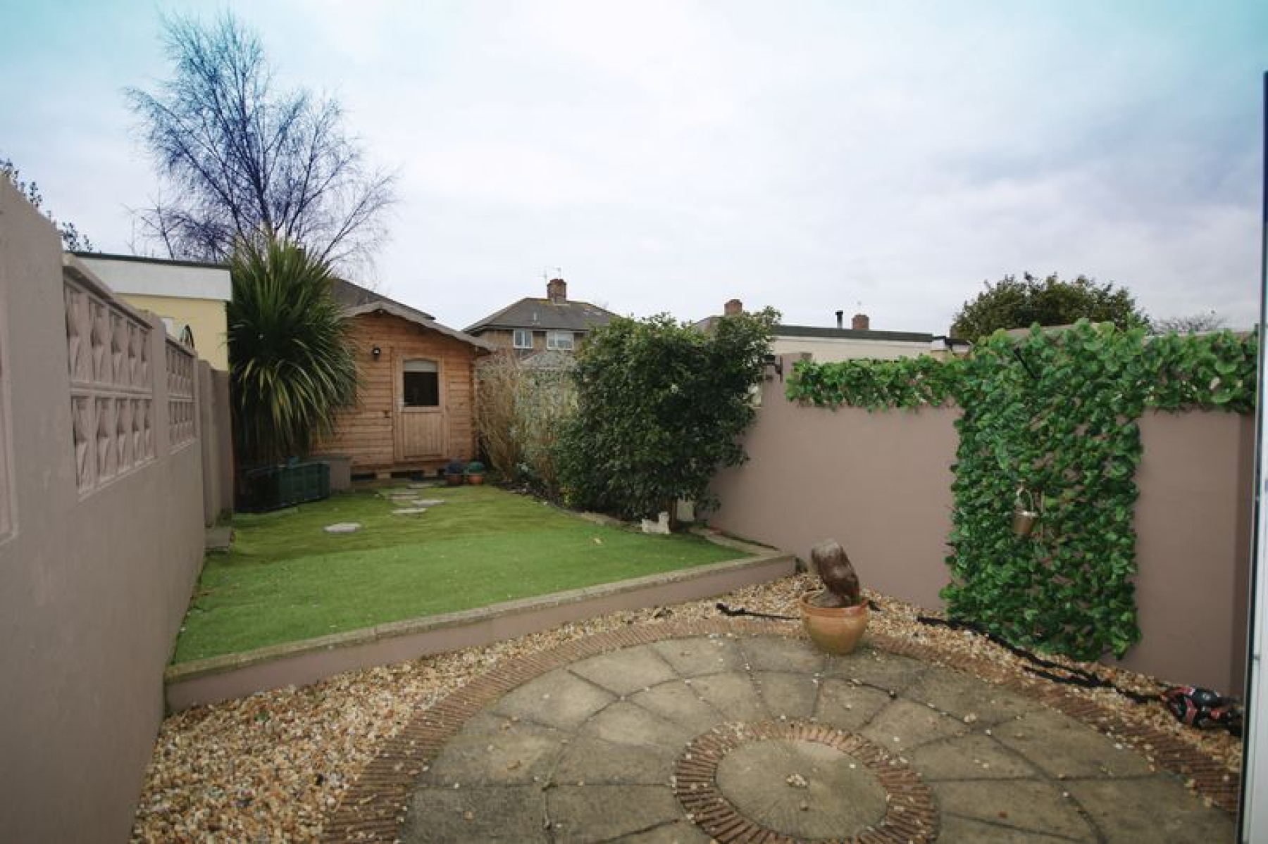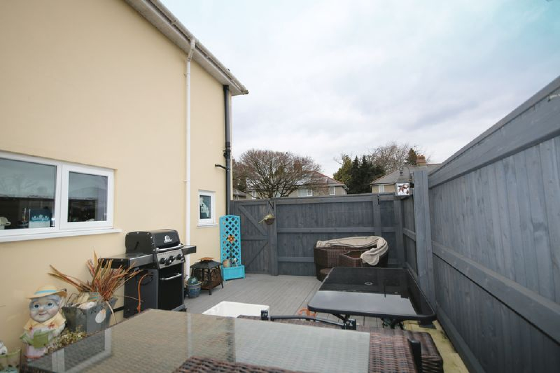 This property has a large private gated driveway with garage and off road parking and plenty of outside space. In addition to the main back garden you will also find a large side patio area.
