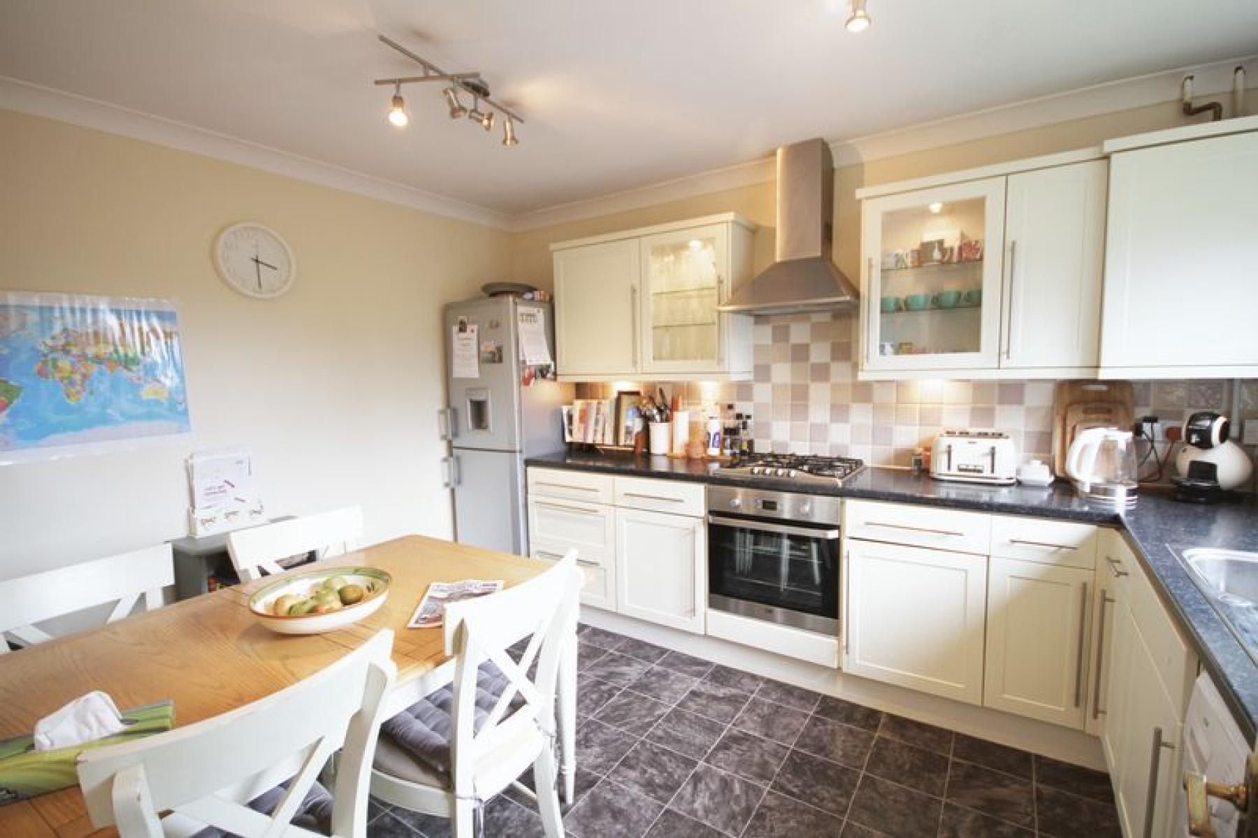 Upstairs are three double bedrooms, two of which have built in wardrobes and a modern family bathroom.